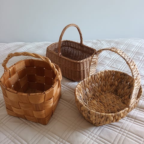 Kevyet todella isot ehjät punotut korit kahvoilla