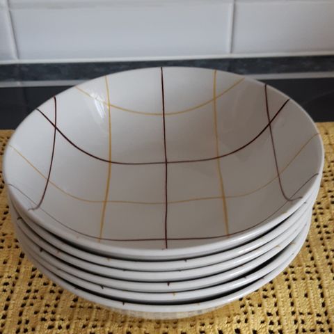 Koriste oli tuotannossa AR-mallin astioissa v. 1958-66. Myytävänä olevat vadit ja kulhot ovat ehjiä ja muutenkin hyväkuntoisia.