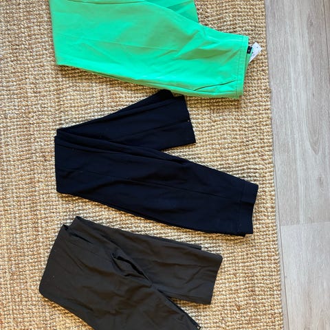Väljät ja leveälahkeiset noin L-koon housut. Marjapuuron väriset, joissa on vyötäröstä joustava resori.
