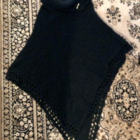 Pirteä poncho syysilmoihin. Siniharmaa valkoinen. Vähän käytetty.