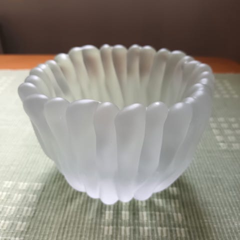 Myydään erinomaisessa kunnossa oleva Tapio Wirkkalan suunnittelema iso Jäkälä maljakko eli toisin sanoen Sormi maljakko. Tuote on samettihapotettua lasia, mikä antaa sille arvokkaan näköisen matta-pinnan. Pohjassa signeeraus Tapio Wirkkala - 3515. Korkeus noin 21,5cm, halkaisija mittauskohdasta riippuen 12-13,5cm. Maljakossa on poikkeuksellisesti tallella jopa Iittalan kolmiotarra ammoisilta ajoilta. Tarrassa oleva Iittalan logo kulunut, mutta tunnistettavissa ja sen alla teksti ”Made in Finland. Maljakolla on ikää noin 70 vuotta eli se on peräisin 50-60-luvulta. Vaasin kunnossa ei juuri ole moitteen sijaa eli lähinnä vain pitkän iän tuomaa minimaalista käyttökulumaa, joka ei kuitenkaan vaikuta tällaisen tuotteen arvoon lainkaan.