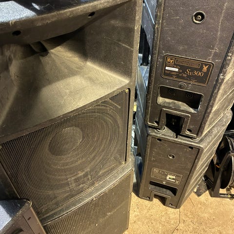 Nyt myyntiin hyvä setti keikoille. Ääntä lähtee riittävästi ulkokeikoillekin. Isoille kajareille jalat mukaan. Kaikki johdot löytyy mukaan. Yksi suren mikki mukaan