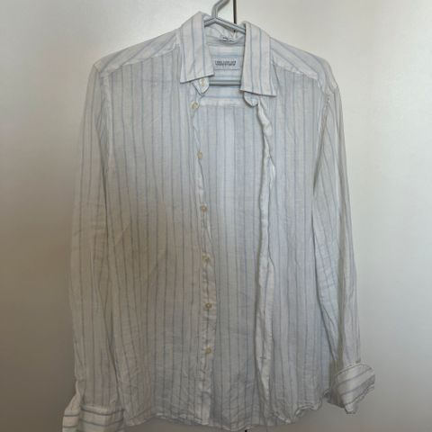Kuvanmukainen pellavapaita. Hyväkuntoinen, kauluksessa pientä tummumista, ei näy ulospäin.