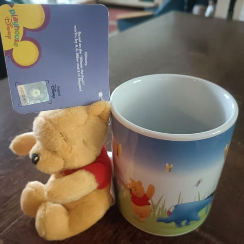Nalle-teemaisia posliiniesineitä. Pääasiassa sisustusesineitä, mutta löytyy myös nalle-avaimenperä.