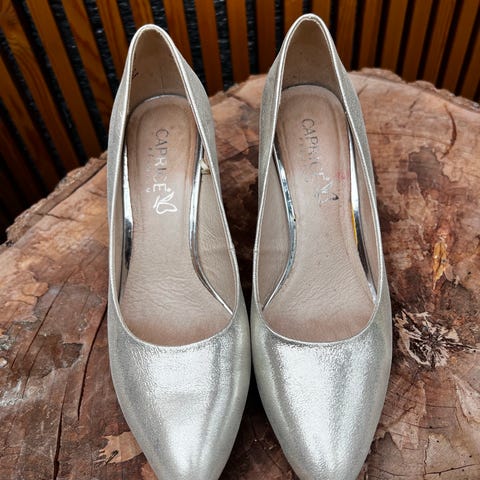 Myydään ihanan erikoiset naisten Camper korkokengät / kiilakorkokengät / sandaletit . Aitoa nahkaa, ajattoman harmaat. Sopii mekkojen ja housujen kanssa. Pohja pehmeää nahkaa, ulkopohja ja kantalappu hyvää, pitävää materiaalia. Tuleva malli ja korko. Korko käytännössä lähes kiilakorkokenkää vastaava.