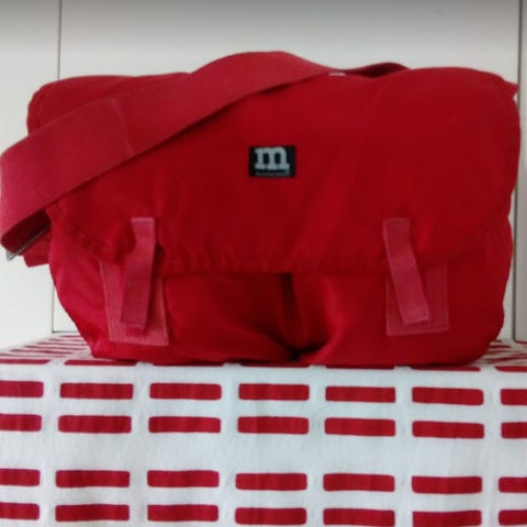 Pieniä käytön jälkiä, mm. rispaantunut vähän olkahihnan juuresta (näkyy kuvasta).
