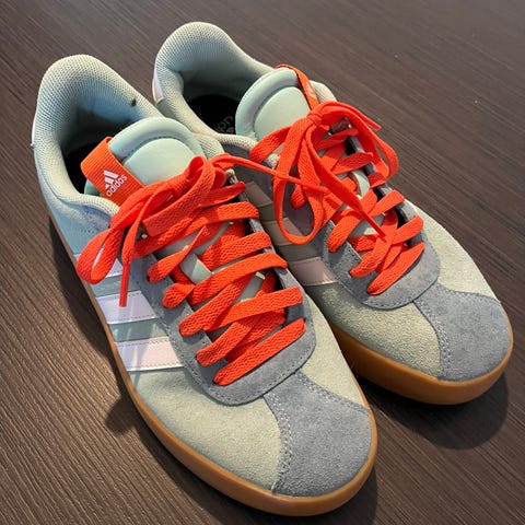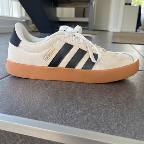 Myydään aidot Adidas VL Court-tennarit koossa EUR 40 (US 8, UK 6,5). Väri beige/valkoinen. Materiaali mokkanahka + kumipohja. Mokassa hieman tummentumia ja takasisävuoressa perus pientä kulumaa. Yleisesti kuitenkin siistit ja hyväkuntoiset