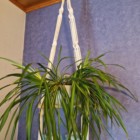 Makramee solmittu amppeli.