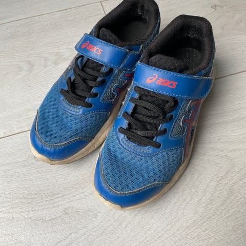 Myydään tummansiniset Asicsin lenkkarit kokoa 32,5, pohjallisen pituus 21 cm.