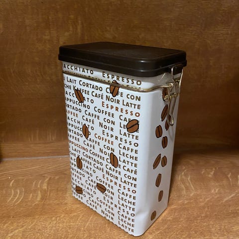 Värikäs, metallinen kahvipurkki