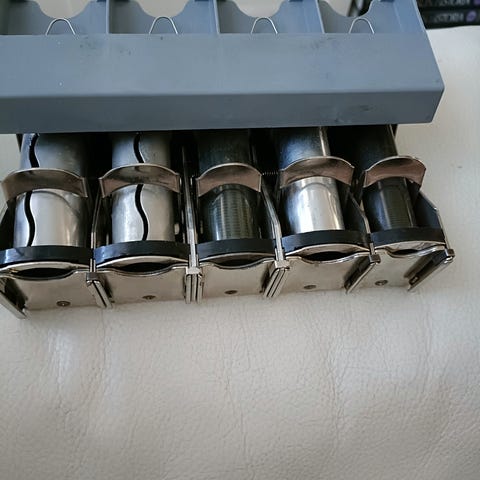 -Kolikkoputkien tyhjennys tapahtuu yksinkertaisella ja toimintavarmalla laitteella, jolloin kolikot putoavat valmiiksi asetettuihin pleksilasisiin kolikkokasetteihin.