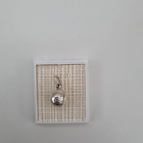 Hopeinen jalkapallo ja ketju, leima 925 ketjussa, riipuksen leima epäselvä. Jalkapallo on umpinainen ja painava. Ketjun pituus 45 cm. Siistikuntoinen.