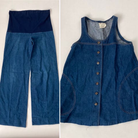 Suomalaisvalmisteinen vintage odotusajan farkkuasu (70-luku)