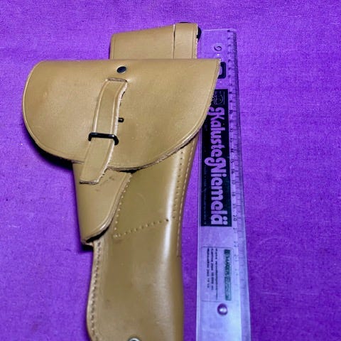 Ehjä ja hyvä pistoolilkotelo myynnissä WWII ajalta. Ei korjauksia näkyvissä. Hyvä yksilö ja Nahka ei ole kuivunut. Käytössä myös Suomen armeijalla aikanaan. Myynnissä myös muualla. Hinta Nyt vain49 eur + postit 6,80