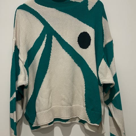 Myydään kuvanmukainen vanha, mutta hyväkuntoinen Marimekon puuvilla v- aukkoinen palmikkoneule koko L.