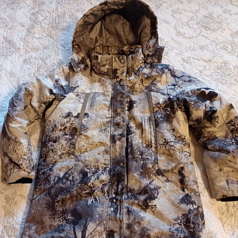 Muuten moitteettomassa kunnossa, mutta hihasta heijastuva logo hieman kulunut (näkyy viimeisessä kuvassa) ja sivusta on ommeltu kiinni reikä (näkyy viidennessä kuvassa)