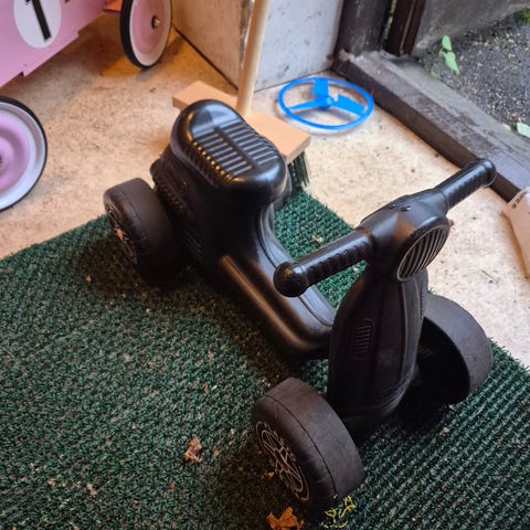Myydään pois kuvan "potkumopo" väri ajanmyötä haalistunut, muuten on vielä hyvä ja toimii seuraavalle hurjapäälle.
