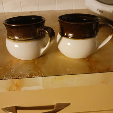 Käyttämättömät kahvikuppi ja tarjoilulautanen, sitruunakuviolla.
