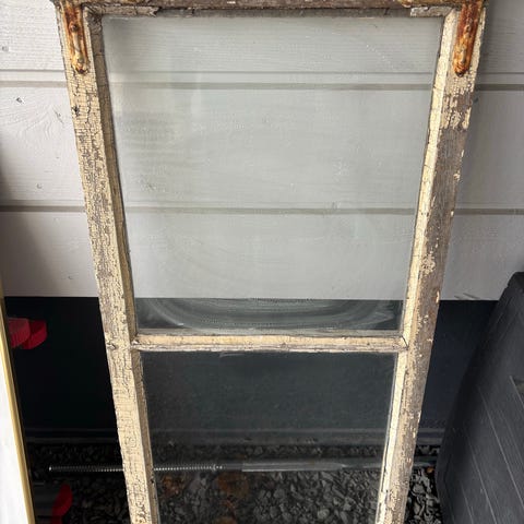 Valkoiseksi maalatut kehykset ja 3 lasiruutua. Siistikuntoinen.