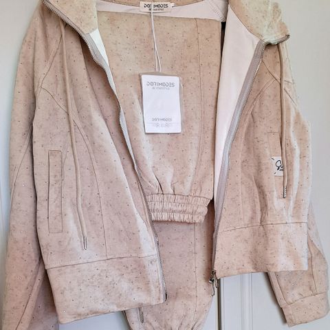 Urheiluhaalari. Koot M ja L. Saatavilla 2 kpl. Uusi. Haalari on koristeltu strasseilla ja kimaltelee kauniisti auringossa.Kangas on tiheää, luonnonmukaista puuvillaa. Täydellinen viileään säähän. Vuodenaika syksy - kevät. Lyhyt takki. Väri vaaleanbeige.