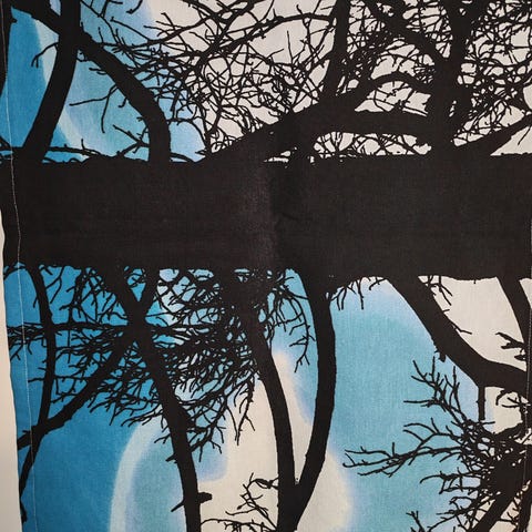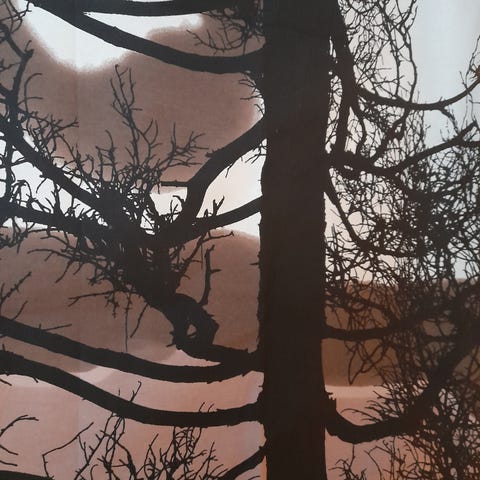 Vallilan kelohonka -kangasta väriltään lila / liila / violetti. Paloja on kaksi kappaletta. Ompele näistä vaikka tyynyjä. Ovat ilmeisesti ylijäämiä normaalikokoisen verhon lyhentämisestä.