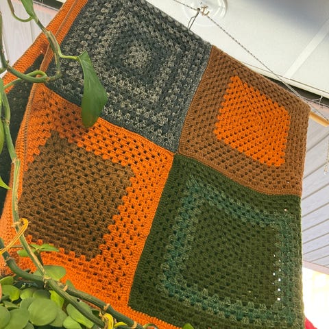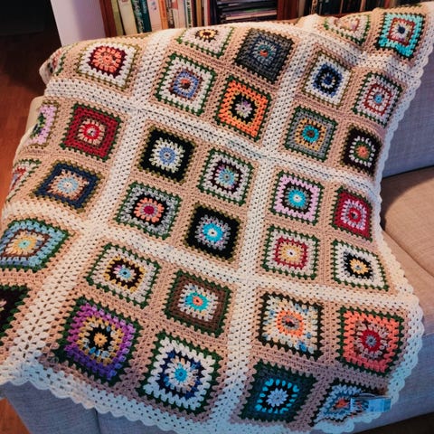 Virkattu peitto isoäidinneliöistä 103 x 183 cm
