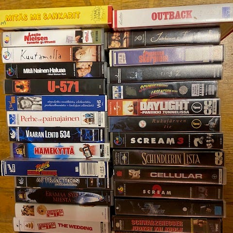 kuvan vhs elokuvia 3e/kpl. 4kpl kympillä. kaikki on katsottu läpi ja toimii.