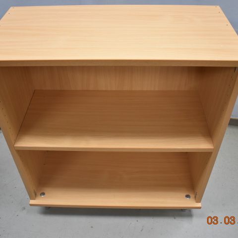 Kolme EFG:n valmistamaa avohyllyä. Hyllyissä on pyörät alla.