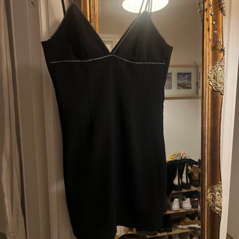 Myydään Gina Tricot -merkkinen mekko. Skater-malli / kellohelma. Puolipitkät hihat. Mustaa jämäkän tuntuista trikoota, erittäin miellyttävä päällä. Niskassa hopean värinen vetoketju.