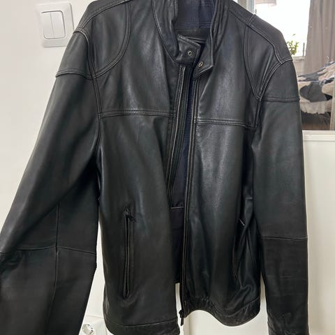 Musta hyväkuntoinen nahkatakki laadukasta nahkaa. Takki on M-kokoinen, napakka sellainen. Mitat: kai-kai 50, olka-helma 57.
