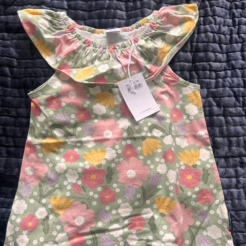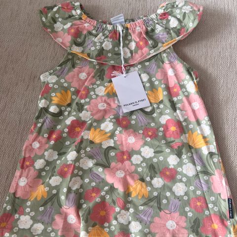 Polarn O. Pyret toppi on suunniteltu tytöille ja se on vaaleanpunainen. Koko 122, mikä sopii noin 6-7-vuotiaille lapsille. Materiaali on pehmeää ja miellyttävää, ja siinä on koristeellinen kaulus. Tämä mekko sopii hyvin sekä arkeen että juhlaan.