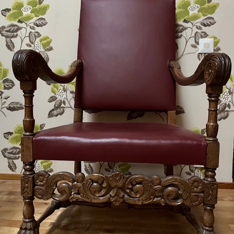 Vaarin tyylikäs ja tukeva antiikkinen nojatuoli. Nouto tai lähistölle voin tuodakin.