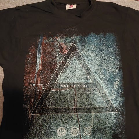 Hyväkuntoinen 30STM-bändipaita, jossa printti vain edessä.