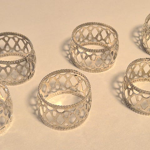 Käsityönä tehdyt makramee-servettirenkaat 55 kpl. Olleet käytössä yksissä häissä. Virheettömässä kunnossa. Nouto Myyrmäestä tai postitus.