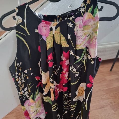 Kahden paidan setti. Musta hihaton napillinen paita. Toisessa helmikoristeet (yksi koriste irronnut, kts. viimeinen kuva) ja toisessa pitsinen yläosa. Koko xs/s.