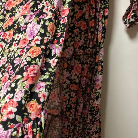 Kaunis syksyn keltainen kukallinen mekko. Koko M.