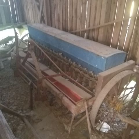 Riihessä pimeässä säilytetty puimakone.
