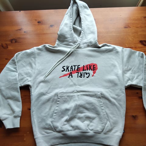 Vaaleanharmaa Nike merkin lyhyt huppari koossa S. Pituus olalta 45 cm.