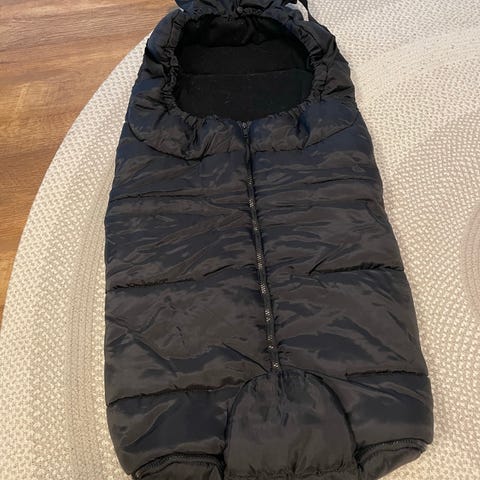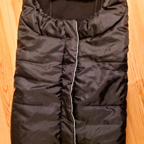 Pari kertaa käytetty. Jalan alue on vedenpitävä. Kun lapsi istuu tai makaa kengillä, lämpöpussi pysyy sen verran siistinä. Pituus on noin 85cm.