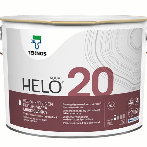 Teknos Helo Aqua 5 2,7l vesiohenteinen kirkas, täyshimmeä erikoislakka puupinnoille sisällä ja ulkona, sävytettävissä kuultaviin sävyihin.