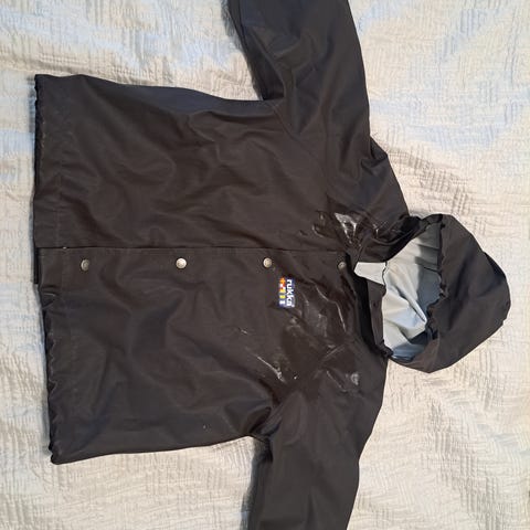 Hc:n Sadetakki vetskarilla 104cm. Nimikoitu. Hitusen hiekkatahraa helmassa takana sisäpuolella. Ei haittaa käyttöä. Nouto Puu-Raksila