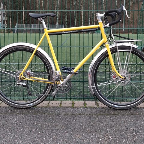 Columbus Thron -laatuputkista valmistettu sorapyörien esikuva kuitukeulalla. Shimano 105 2x11 vaihteet, TRP Spyre mekaaniset levyjarrut. 700c-kiekot ja nyt päällä 32c Schwalben Marathon Supremet maantieajoon. Zippin tanko, Dedan stemmi ja Pelagon stokki satula ja tolppa. Ajettu todella vähän vain lenkkiajoa.