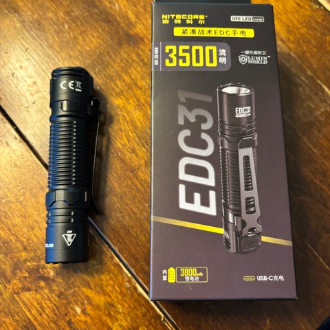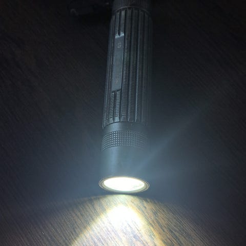Convoy S21A EDC taskulamppu. Jonkin verran käytön jälkiä alumiinisessa rungossa, mutta se kuuluu asiaan.