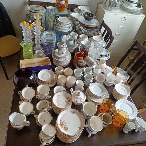 Myrna kahviastiasto myynnissä, kuvasta poiketen ei ole enää myrna lusikoita.