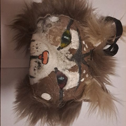 Maski on kovalla työllä tehty ja siinä on kaikenlaisia yksityiskohtia ja maski on ehjä ja hyväkuntoinen.