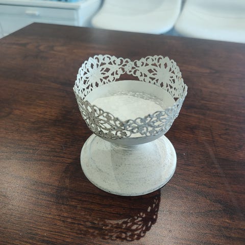 Käyttämättömänä ollut vanha puinen kynttiläjalka.