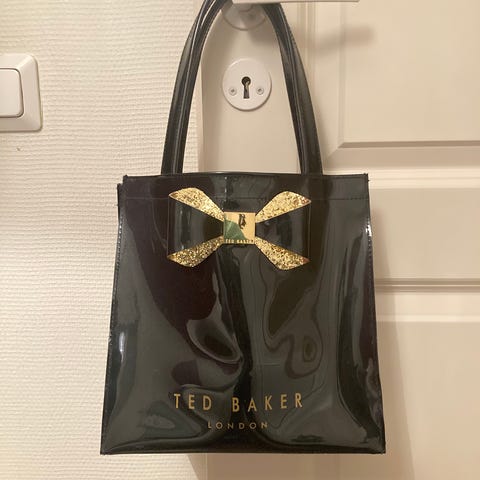 Hyväkuntoinen Aito Ted Baker Laukku. Väri pronssi. Sisällä vetoketju tasku. Kork 24cm. Lev 25cm. Syv 12cm. Hinta sis pk seurantakoodilla. Kouvola