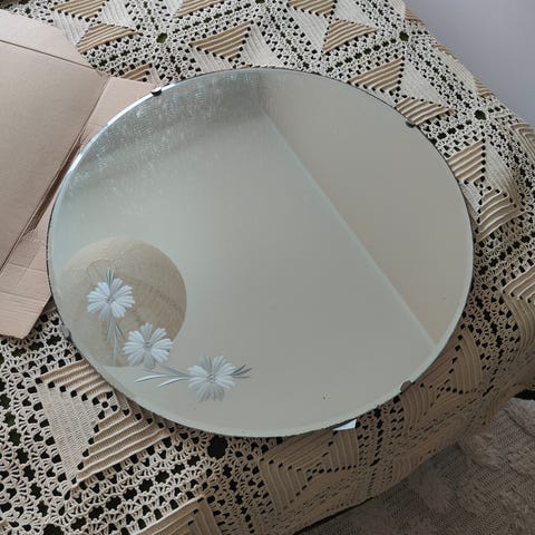 Kivan värinen peili ketjupidikkeellä.
