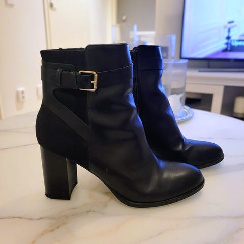 Upeat nilkkurit 41, uudet, hintakyltti poiston jälkeen tullut vähä nahka pois sisäpuolelta,näky kuvassa.Korko 10 cm.