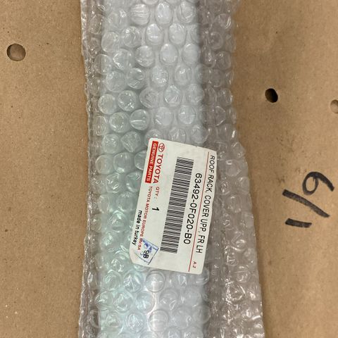 Myydään Toyotan uusi ja alkuperäinen osa, osanumero 63492-42011-B1 (COVER, ROOF RAIL, FR LH, (COVER, ROOF RACK LEG, FRONT LH), Kattokaiteen päässä oleva muovi vasen etupää). Sopivuus: